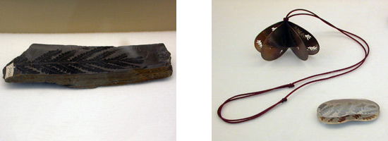 Nader bekeken ging mijn aandacht toch uit naar de fossielen, en dan vooral die waar een afdruk van een plant in zit. Het grafische element daarvan sluit het meeste aan bij mijn werk op dit moment. Ik houd me nu voornamelijk bezig met het inpersen van diverse materialen in metaal die daarop hun ‘sporen’ achterlaten. De fossielen bevatten ‘sporen’ van het ‘verleden’, met die ‘sporen’ wil ik nu in het ‘heden’ iets gaan doen!